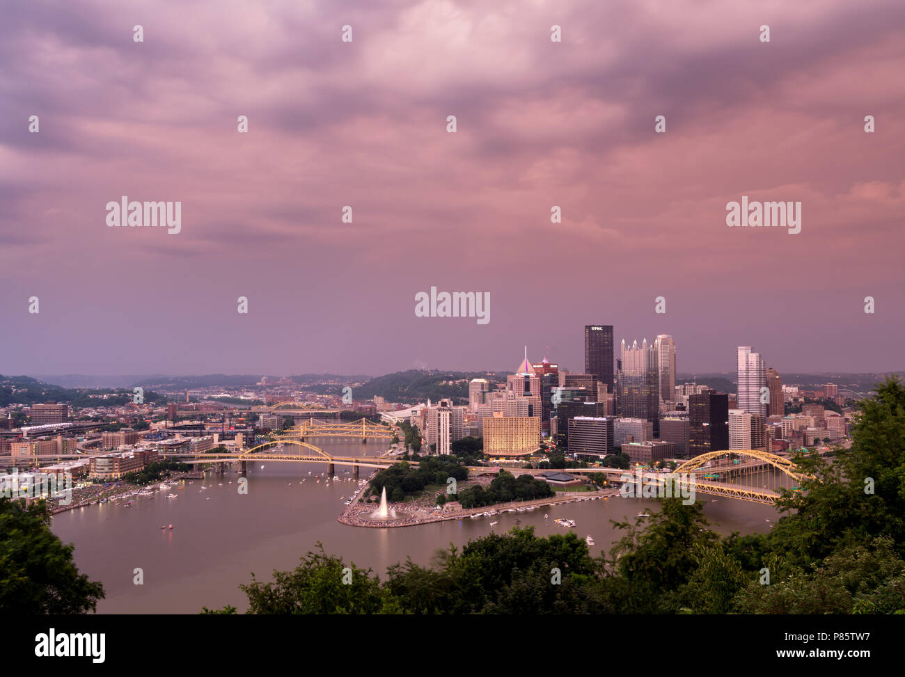 Pittsburgh at night as seen from mount washington. Profitez d'une vidéo de a pan from the overlook libre de droits d'une durée de 20.000 secondes à 23.98 images par seconde. The generally accepted boundaries are route 19 to the south. The view is outstanding especially at sunset, when the orange sky glows over pittsburgh. Taken on mt washington, overlooking pittsburgh pa.
